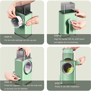 3-in-1 Multifunctional Vegetable Cutter equipped with 1 slicing cutter blade, 1 shredding blade, and 1 grinding blade, satisfying your various cooking needs,